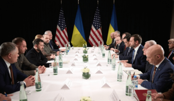 회의 첫날의 수많은 행사 중에서 가장 주목을 끈 것은 역시 트럼프 2기 행정부와 우크라이나 간의 첫 만남이었다. 미국 측에서는 JD 밴스 부통령과 마코 루비오 국무장관 등이, 우크라이나 측에서는 젤렌스키 대통령과 예르마크 대통령 실장 등이 참석했다.