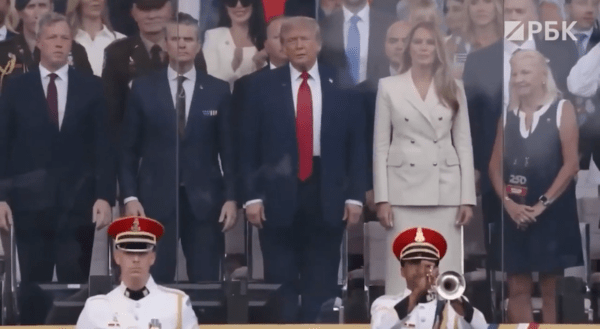 이날 트럼프 대통령 부부는 흐뭇한 표정으로 워싱턴DC의 상징인 링컨기념관에서 워싱턴모뉴먼트까지 콘스티투션 애비뉴를 따라 진행되는 퍼레이드를 지켜봤다. 공교롭게도 이날은 트럼프 대통령의 79번째 생일과 맞물려 '대통령 축하 잔치'처럼 여겨졌다. 그런 탓인지, 행사 뒷전에서 열린 '노 킹스'(No Kings, 왕은 없다) 반(反)트럼프 (정책) 시위가 더욱 주목을 받았다.