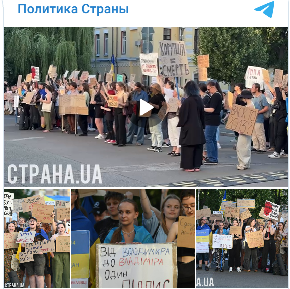 젤렌스키 우크라이나 대통령이 최근(7월 22~24일) 측근들의 비리를 파고드는 국가반부패국(NABU, 러시아어로는 НАБУ, '나부'라고 읽는다)을 통제하기 위한 법안을 내놓았다가, 이에 저항하는 반대 시위에 밀려 법안을 철회했는데, 그 후유증으로 '전쟁 중 가두 시위 사태' 우려됐었다.