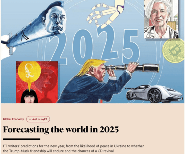 하지만, 전망은 역시 전망에 불과할 뿐이다. 중간에 어떤 돌발 변수가 튀어나와 예상을 어그러뜨릴 지 모른다. FT는 이를 인정하면서 지난해의 새해(2024년) 전망 20개 중 5개가 틀렸다고 고백했다. 5개 중에는 트럼프의 대선 승리도 포함됐다.