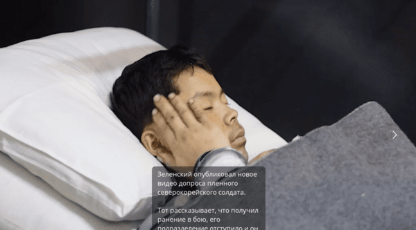 우크라이나 매체 스트라나.ua에 따르면 젤렌스키 대통령은 이날 “포로로 잡힌 북한군 병사에 대한 신문이 계속되고 있다"며 침대에 누워 있는 북한군 1명과의 대화 영상을 텔레그램에 올렸다. 심문 대상자는 다리를 다쳤지만 대화는 가능한 2005년생 스무살 소총병이다. 1999년 생 다른 포로는 턱을 다쳐 말을 제대로 할 수 없어 첫 영상에서 필담을 나누는 모습이 포착되기도 했다.